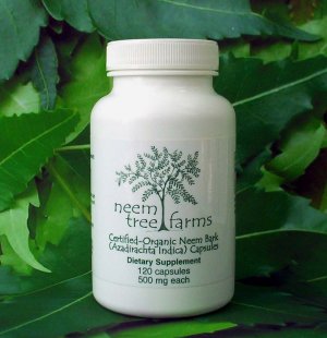 Organic Neem Bark Capsules, 120 capsules The ingredients that made organic neem products an important part of the Ayurvedic tradition for more than 6,000 years are concentrated in the Neem Bark, which is specifically cited for treating gum disease, as a potent antibacterial and anti-inflammatory agent, and for its strong stimulation of the immune system. Ingredients: Powdered neem bark, hydroxpropyl methyl cellulose in a Kosher-certified, preservative-free vegetarian capsule that contains no starch, sugar, corn, soy, wheat or dairy products. Recommended Use: Take 1 to 3 capsules once or twice a day. Not recommended for use by pregnant or nursing mothers, or anyone (male or female) who is trying to conceive a child. BUY 1 bottle at $12.99